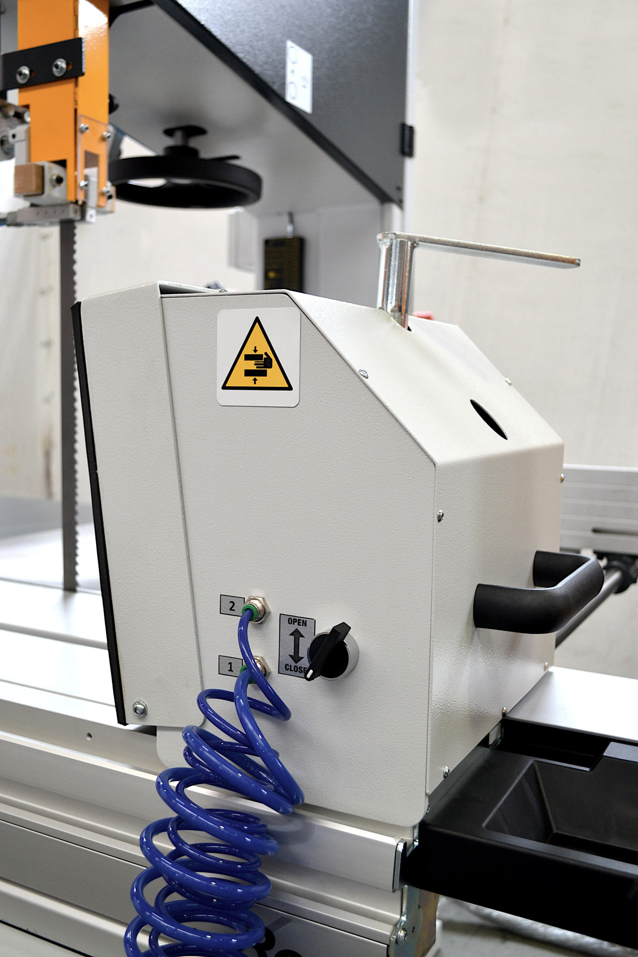 - Soulèvement par crémaillère du guide-lame avec protection de la lame